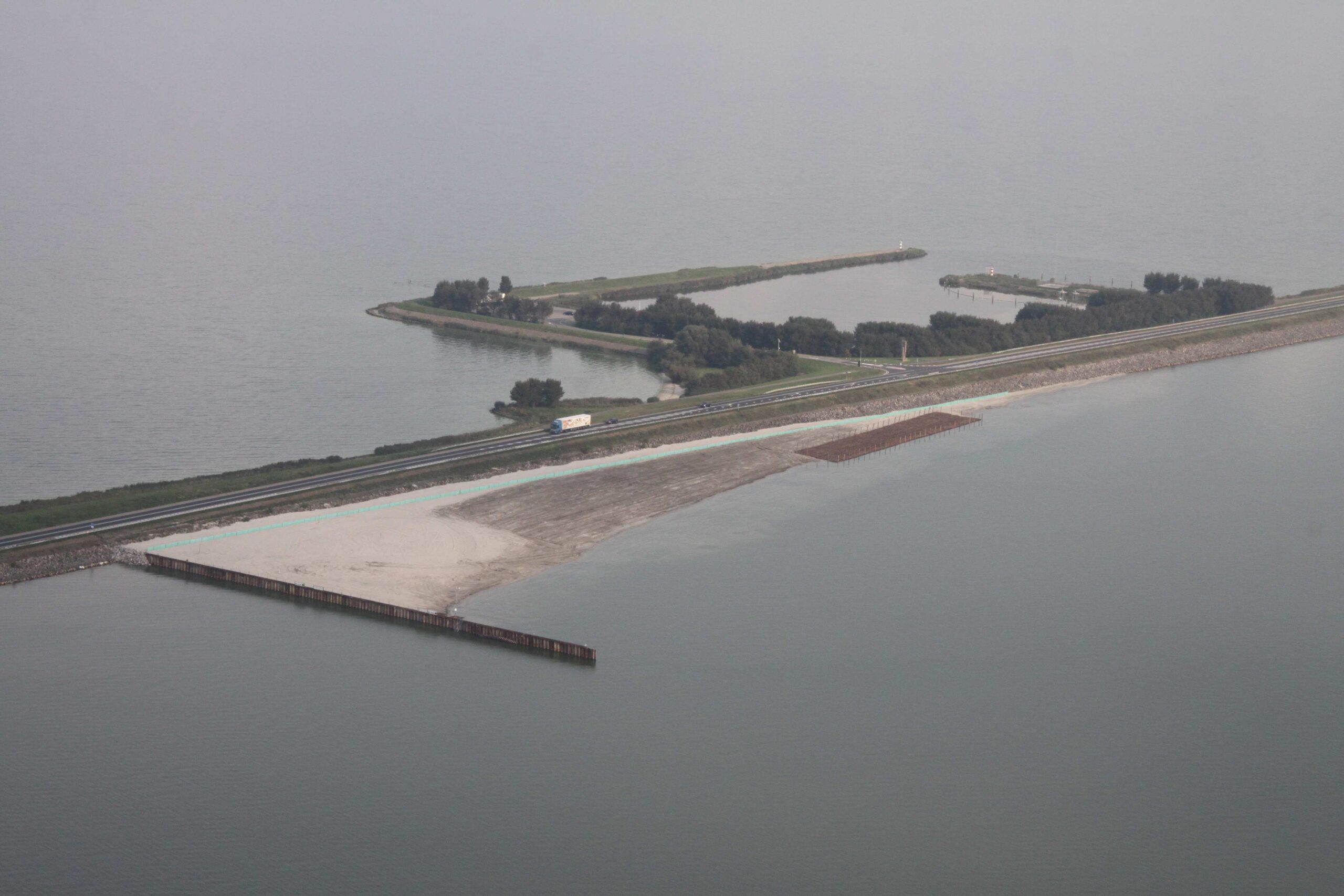 This pilot project, part of the Dutch Flood Protection Program, created a sandy foreshore consisting of a large quantity of sand that is deposited in front of a dike.