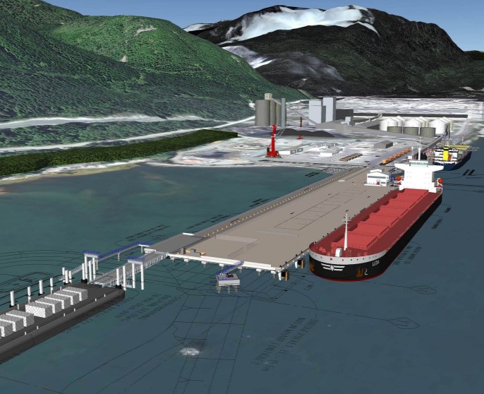 The project will consist of a 320 x 60 meter terminal for the Rio Tinto BC Works, as well as a berth for cargo barges. Both elements will be built on more than 400 steel piles with a concrete deck of approximately 20,000m³.