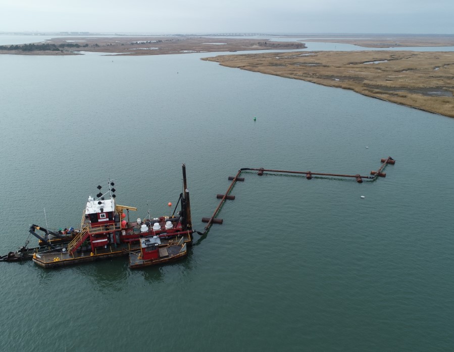 Work involved dredging sediment from the channel of the New Jersey Intracoastal Waterway and beneficially using the material to create habitat on marshland owned by the New Jersey Division of Fish & Wildlife.