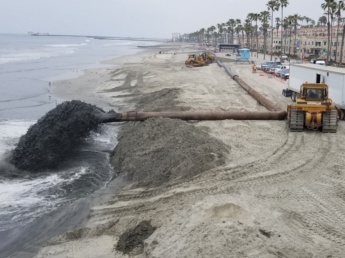 Manson Construction crews continue their work in the City of Oceanside Harbor (CA), dredging some 110,000 cubic yards of clean sand over the past week.