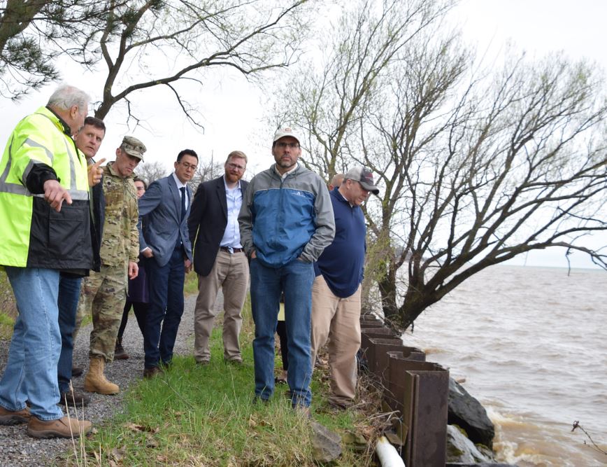 The U.S. Army Corps of Engineers Buffalo District’s team put ‘boots on the ground’ on May 10 in the Town of Greece and the Village of Wilson, to better understand shoreline conditions and mitigation efforts underway in response to the rising Lake Ontario water levels.