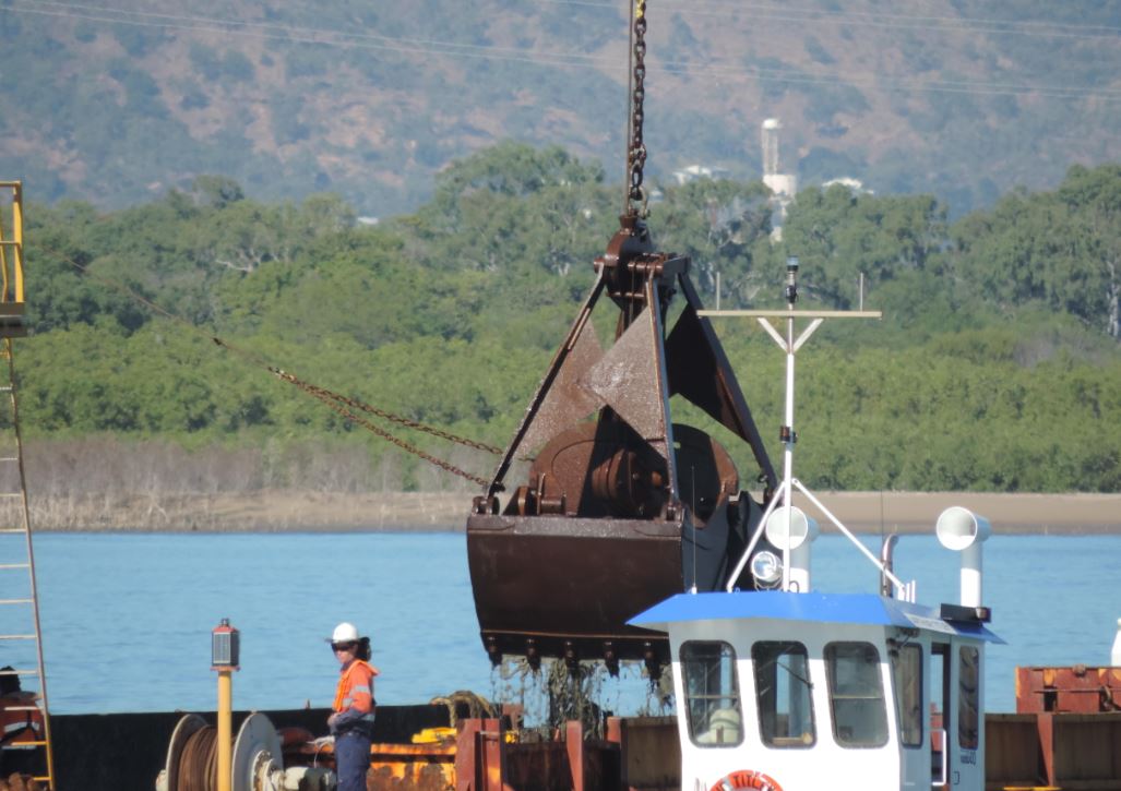 The Port of Townsville’ grab dredger is moving ahead with the sand removal operations from the Ross River channel which was deposited by the February 2019 flood.