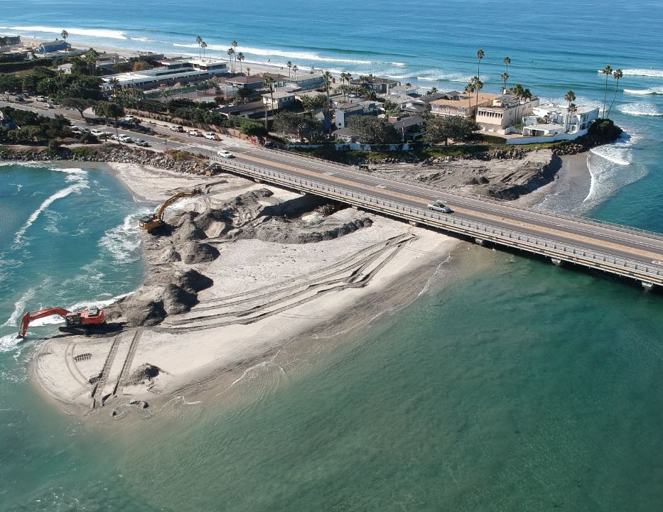 After about two weeks of digging, heavy equipment has cleared a buildup of sand from the San Dieguito River inlet to restore tidal flushing to the lagoon, reports the City of Del Mar, California.