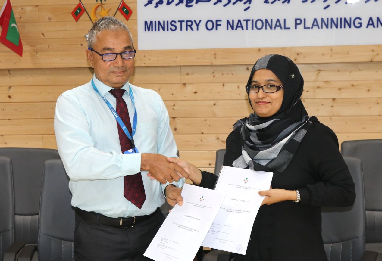 Director General of Planning Ministry, Fathimath Shana Faarooq, signed the agreement yesterday on behalf of the government and MTCC COO, Shahid Hussain Moosa, put his signature on behalf of the company.