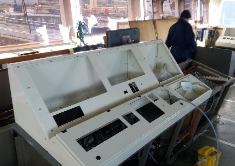 The new consoles have now been fitted on the Bridge and cables are being run ahead of the new equipment arriving on board and being installed.