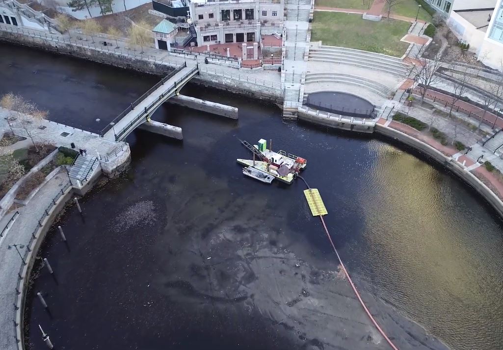“The general scope for this project remained along the lines of past work, where we restore river depths to facilitate and improve water quality, fish migration, but this one came with a twist; its footprint was tightly nestled within the low bridges and bustling infrastructure of Waterplace Park in downtown Providence, RI,” said the company in their latest announcement.