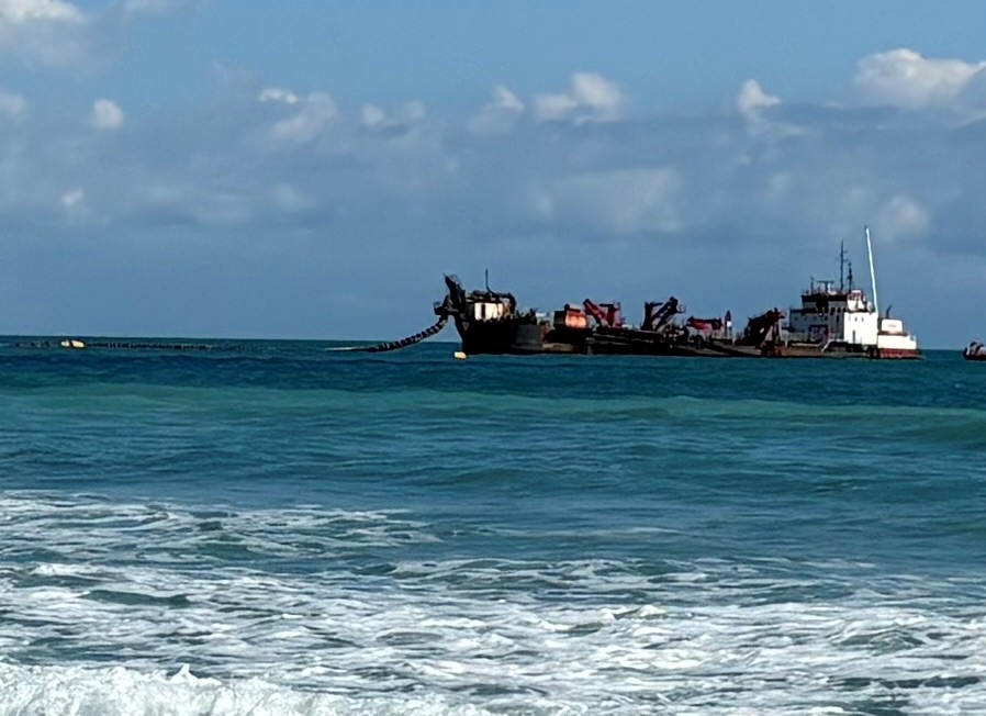 The dredging installation is a complete turnkey package including a 900 mm trailing pipe, designed to dredge at max -30m depth, complete with its gantries and winches, a dredge pump and jet water pump including drives, plus ample hopper loading and discharging equipment, including dredge valves and overflows.