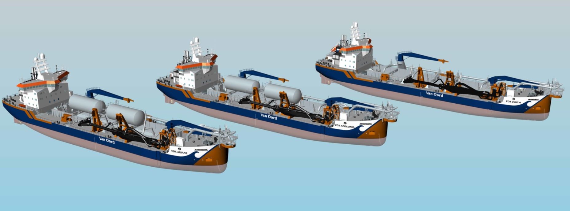 The new trailing suction hopper dredgers are part of Van Oord’s innovative investment program and fit in with Van Oord’s ambition of making its fleet more economical and energy efficient. The vessels will obtain a Green Passport and Clean Ship Notation and by using LNG, van Oord will reduce the emissions of its fleet.