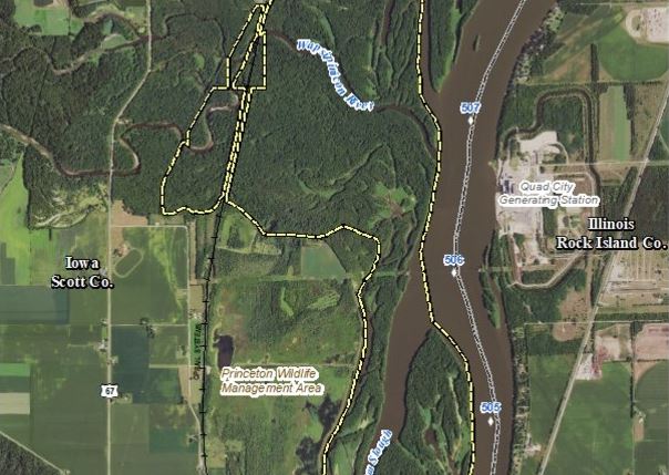 Steamboat Island HREP is a 2,620-acre island and backwater complex located in the middle section of Pool 14 of the Upper Mississippi River, between the town of Princeton (UMR River Mile 502.5) and the Wapsipinicon River (UMR RM 508.0), in Clinton & Scott Counties, Iowa, and Rock Island County, Illinois.
