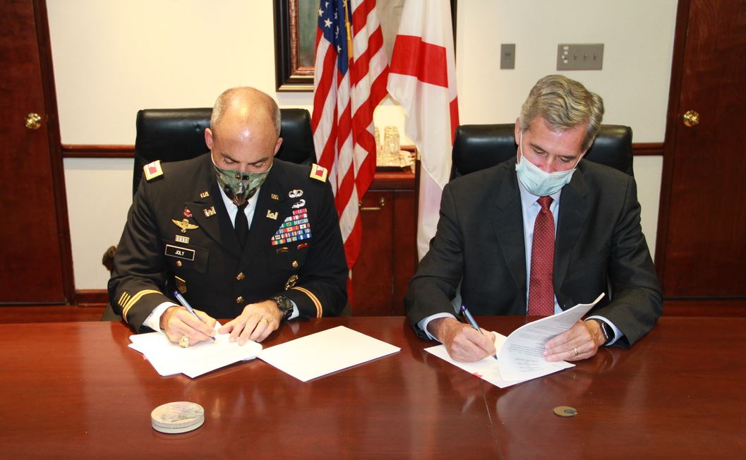 Colonel Sebastien P. Joly, Commander of the Mobile District, and John C. Driscoll, Director and Chief Executive Officer of the Alabama State Port Authority, signed the agreement on June 17, 2020.