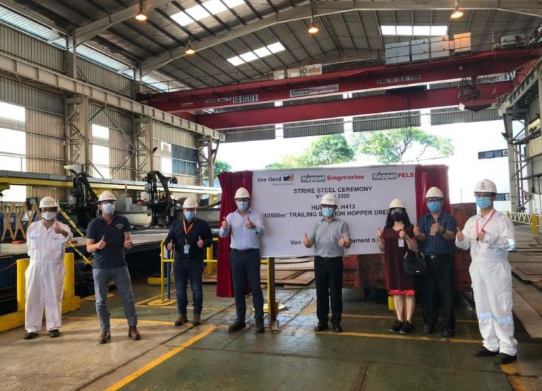 A steel cutting ceremony for the Hull No. H413 – a trailing suction hopper dredger (TSHD) to be built for Van Oord – took place last week at Keppel Singmarine.