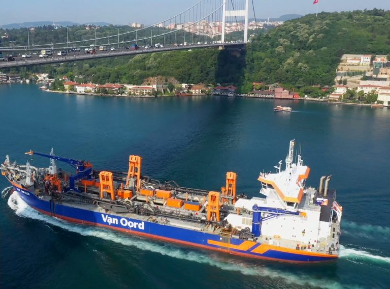 Van Oord’s newest trailing suction hopper dredger Vox Amalia was spotted while sailing through the Bosphorus strait last week.
