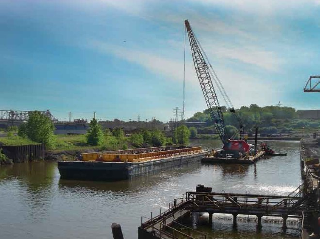 Subject to the availability of funds, Cleveland Harbor is dredged twice every year, once in the spring and once in the fall.