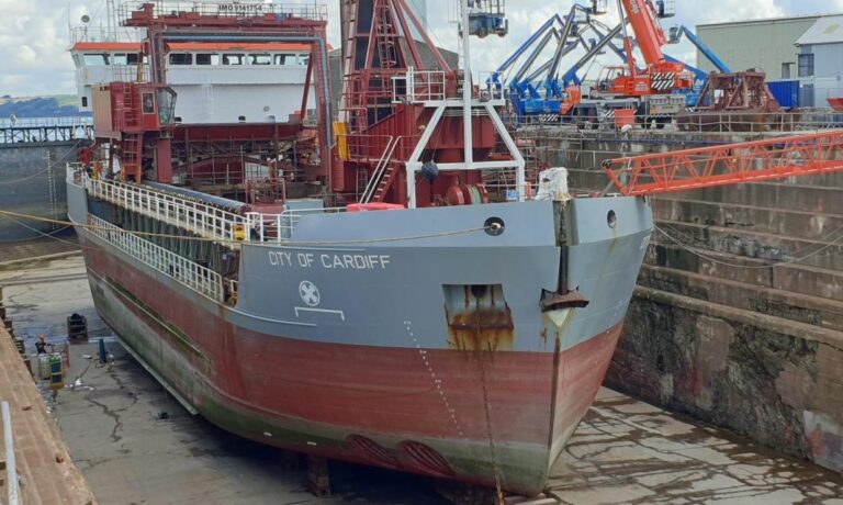 The latest vessel to visit A&P Falmouth for a standard dry docking is the trailing suction hopper dredger City of Cardiff, A&P Group Limited said in their latest announcement.