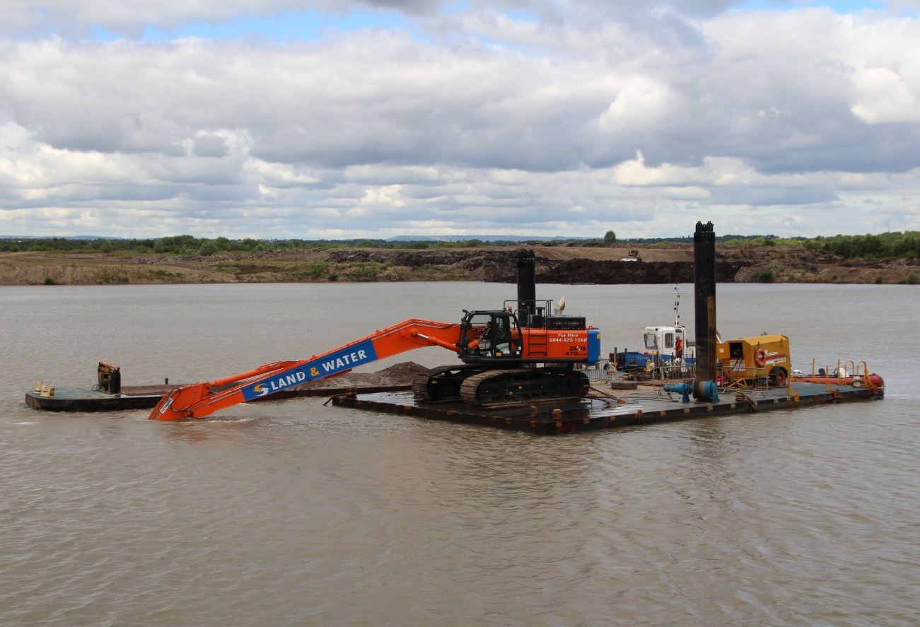The Land & Water Plant team has been working at a sand and gravel quarry in Manchester using its specialized plant, including a ZX490 23m long reach, to excavate the mineral lying under the peat down to 10m deep.