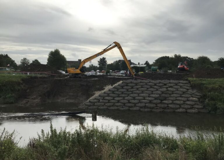 According to the Environment Agency, rock bags are being installed to reinforce the bank.