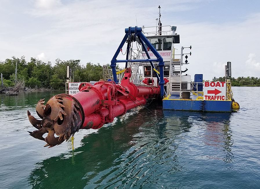 The cutter suction dredge Maya Caelyn moved into position off Fort Myers Beach in Lee County, Fla., earlier this month to begin dredging Matanzas Pass channel, said USACE.