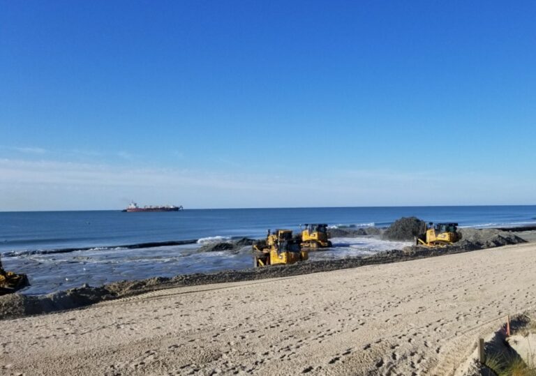 The project includes offshore borrowing of material and placement of sand over approximately 10 miles of beach.