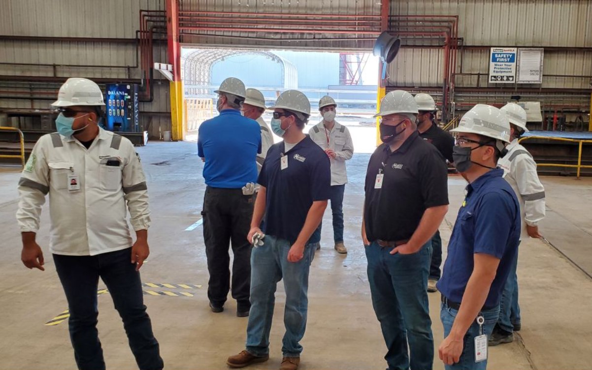 Two days after signing the contract for a new hopper dredger, Manson Construction managers visited the Keppel AmFELS, Inc. team at their shipyard facility in Brownsville, TX.
