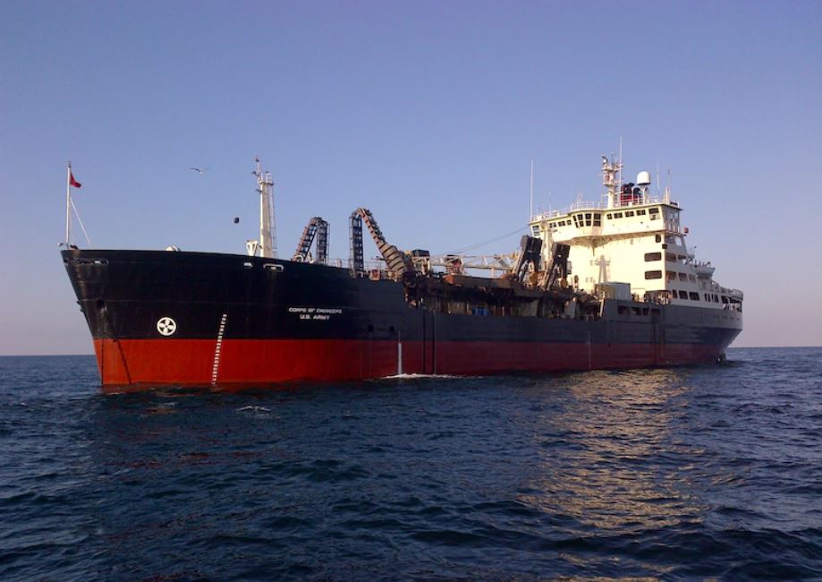 In this area, the dredger deals with shoaling problems that occur during high and low water.
