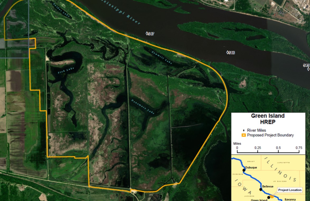 The Green Island project is part of the Upper Mississippi River Restoration Program and is being constructed through a partnership with the Iowa Department of Natural Resources.