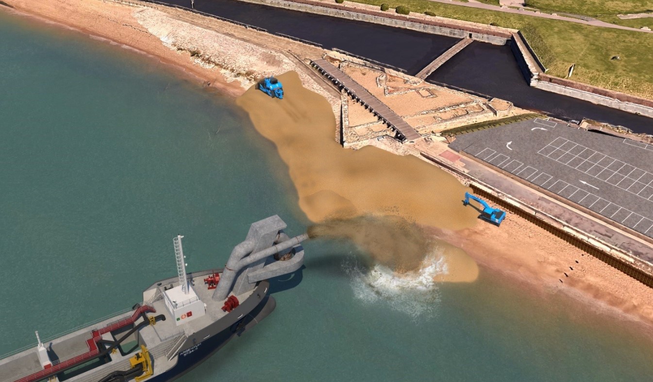 The hopper dredger will install the temporary working platform, bringing the next stages of the construction above the tidal zone.