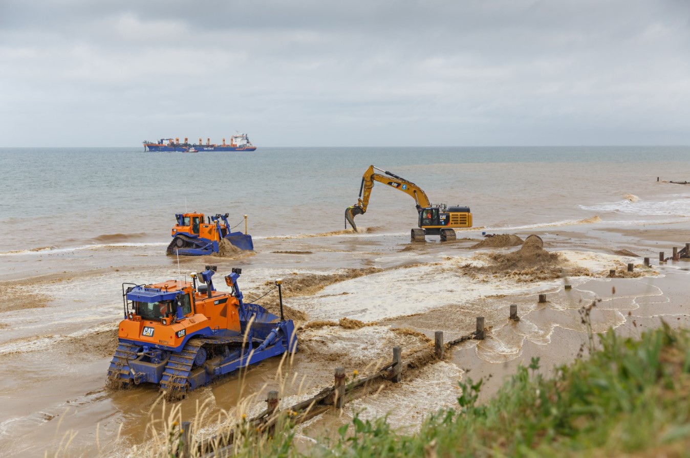 Team Van Oord won the contract to place the 1.8 million m3 of sand over five weeks in the summer of 2019. The sand was dredged from licensed seabed areas and pumped onto the beach where it was placed and profiled.