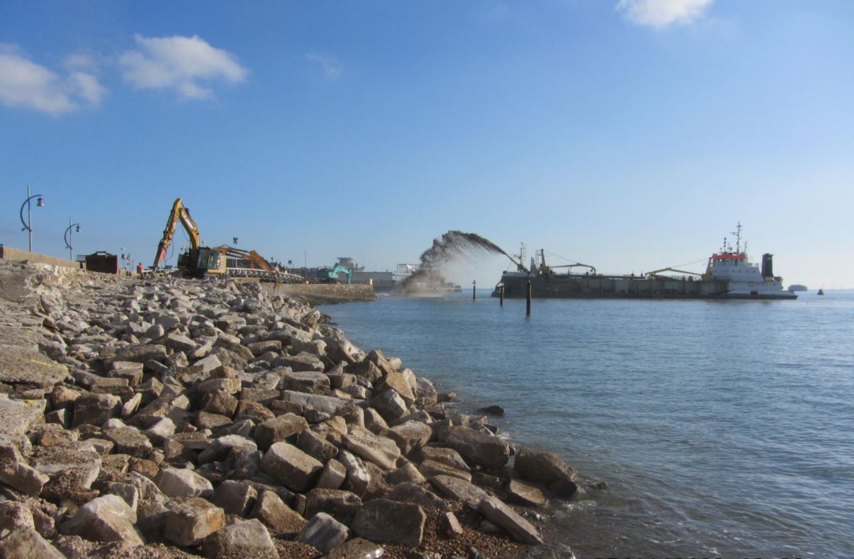 “We are currently levelling the dredged material to form the eastern temporary working platform,” Southsea Coastal Scheme said.