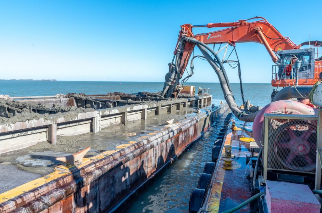 The dredging is taking place from the Maumee River mouth, extending out into the Maumee Bay navigation channel.