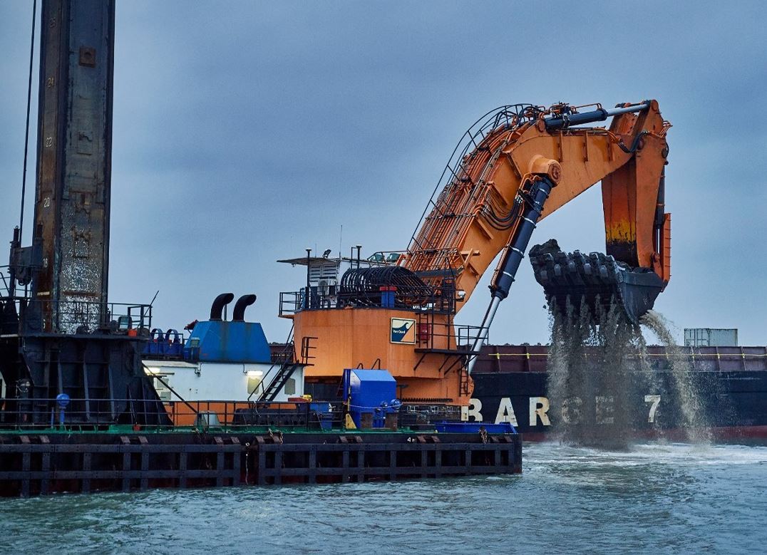 “Backhoe Simson is a true muscle machine,” said Van Oord. “It is equipped with a 34 cubic meters bucket and can work at a dredging depth of up to 26 meters.”