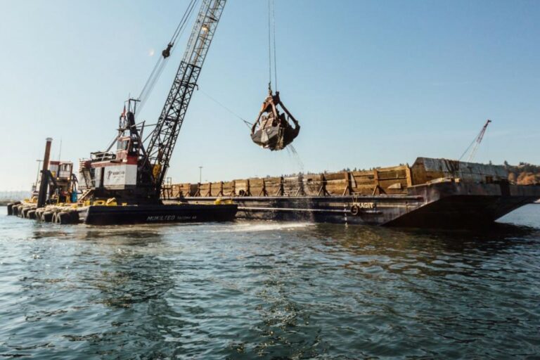 Dredged material will be transported by barge to the Waste Management Duwamish Reload Facility, a commercial transload facility. From there it will be transported by rail to the Columbia Ridge Landfill for disposal.