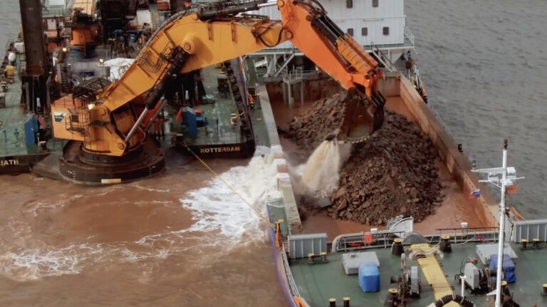 “Approximately 2.4million meters³ of rock has been removed from the seabed using the world’s largest dredgers, and we are pleased that this material will be reused elsewhere within the project. The second-half of this year has seen the arrival of three caissons for the Castlegate (north) and Dunnottar (east) Quays, and revetment work on what will be the open quay sections of the Harbor.”