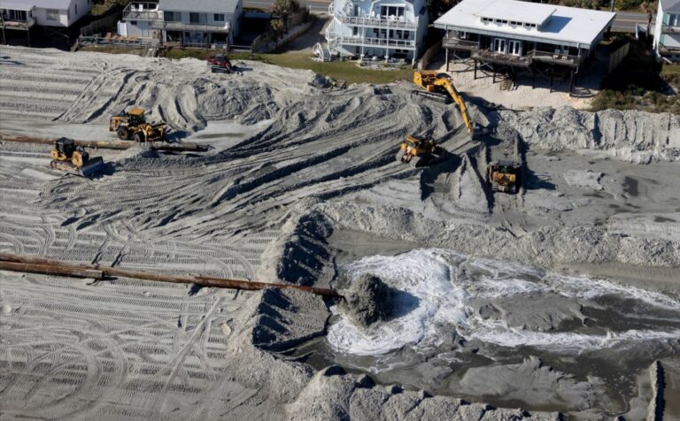 The work includes both dune and beach berm construction along approximately 2.6 miles of coastline from Vilano Beach to South Ponte Vedra Beach.