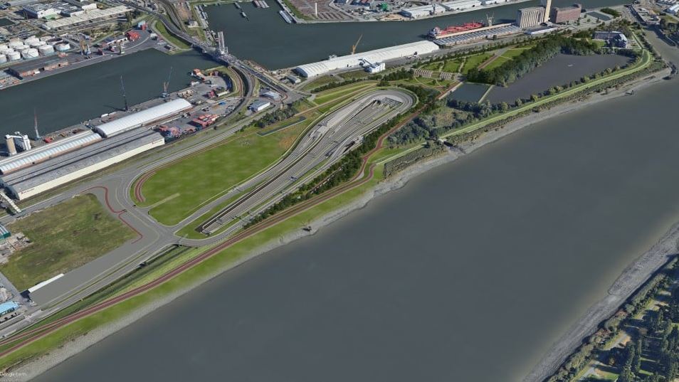 The junction will be submerged into the landscape over a distance of 1,700 meters and will have 8 lanes with access roads and exits to the port and the north of the city of Antwerp.