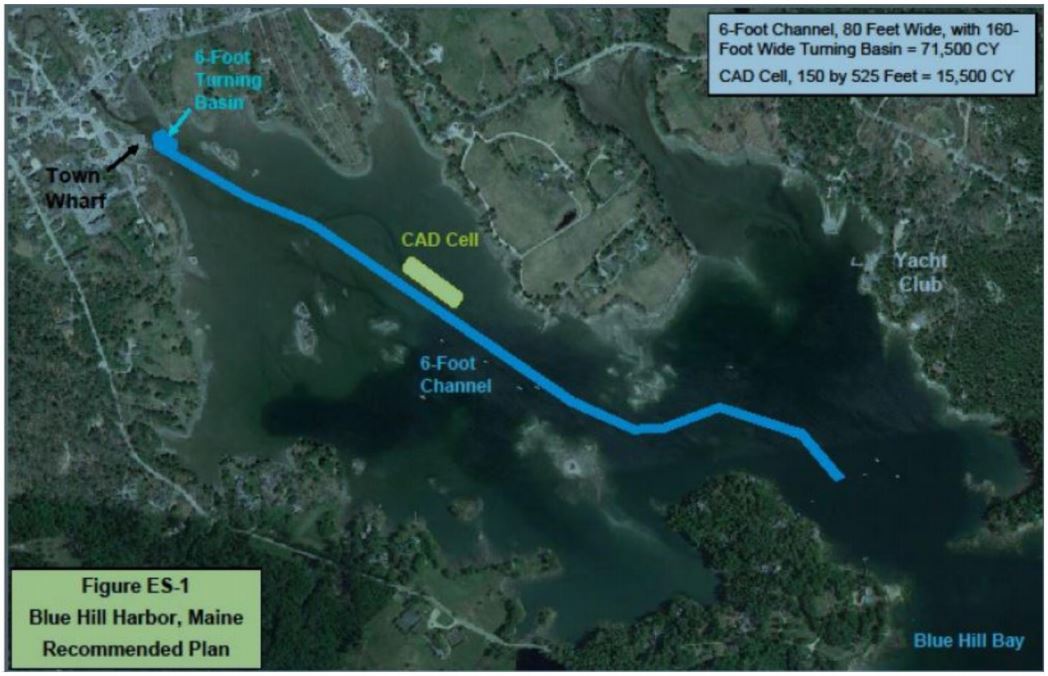 The U. S. Army Corps of Engineers (USACE) and the Town of Blue Hill have submitted a Navigation Improvement Project for the creation of a federal navigation channel and a Confined Aquatic Disposal (CAD) cell in Blue Hill Harbor.