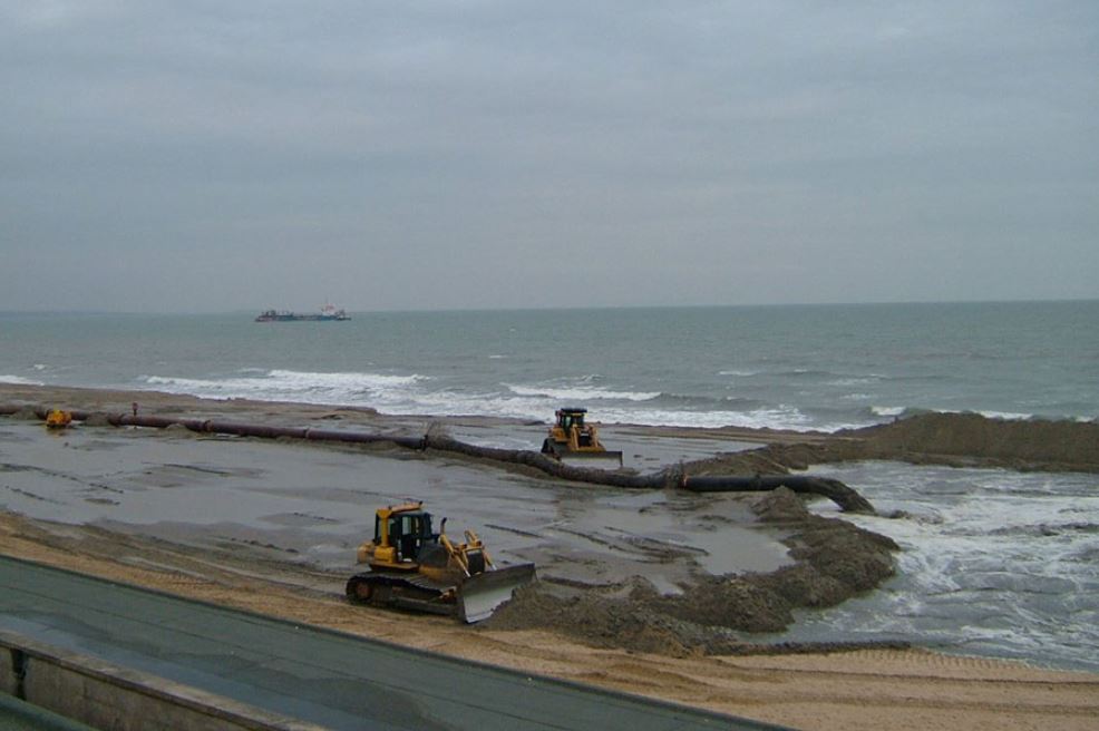 This £7.5 million project, which is being carried out by Boskalis Westminster Ltd, will see around 350,000m³ of sand being pumped ashore (using a pipeline) and distributed by bulldozers.