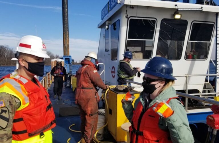 The U.S. Army Corps of Engineers Philadelphia District’s Commander LTC David Park recently joined the Safety and Operations teams on a visit to the ongoing Philly to Trenton maintenance dredging project.