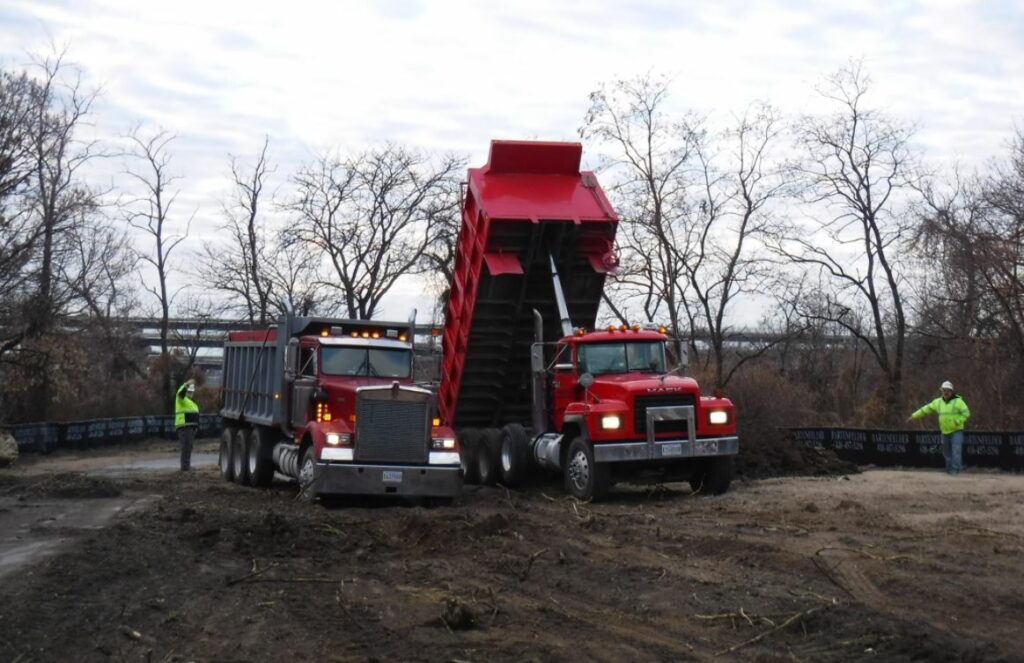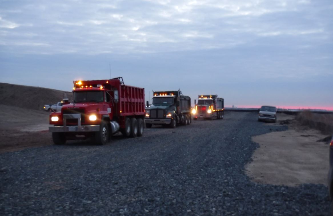 CBY, a Dundalkbased hauling company, is handling the dredged material transport from Cox Creek to Ridgley’s Cove, with 150 to 180 trucks a day transporting sediment to the site.