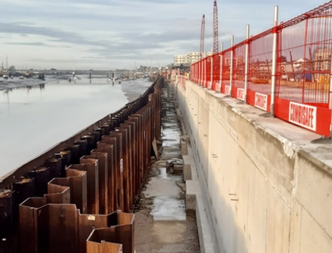 The creation of a new river frontage at Free Wharf in Shoreham is nearing completion, as part of an enabling works package contract for Wates Residential, reports Mackley.