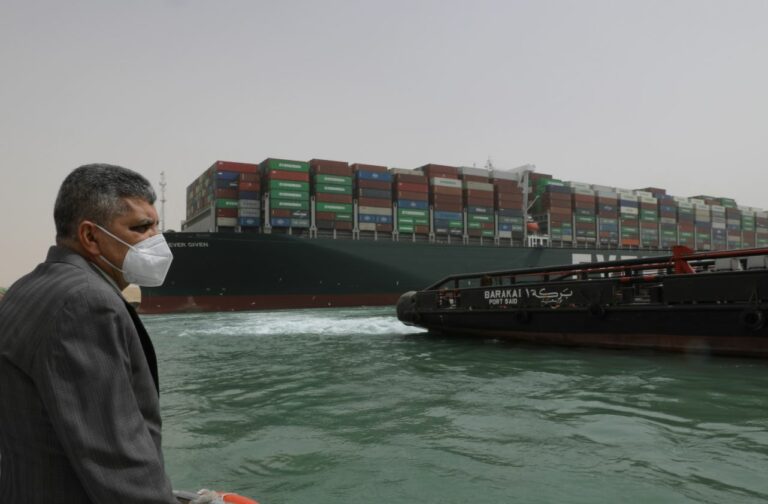 The Ever Given ran aground in the Egyptian canal on March 23.