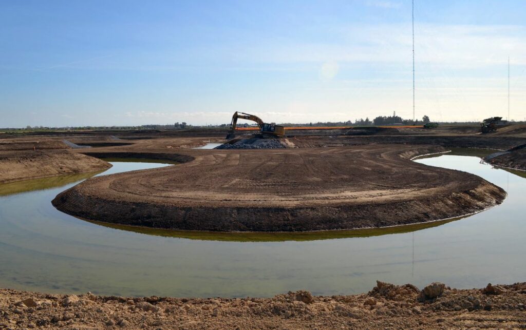 Construction at the Natomas Reach B project site includes installation of a turnout-outlet to control water flow, a pump at the lift station which will return heavy rain and floodwaters back to the Sacramento River and the creation of a deep-water channel, or hibernaculum, to create habitat that will help protect endangered Garter Snakes.