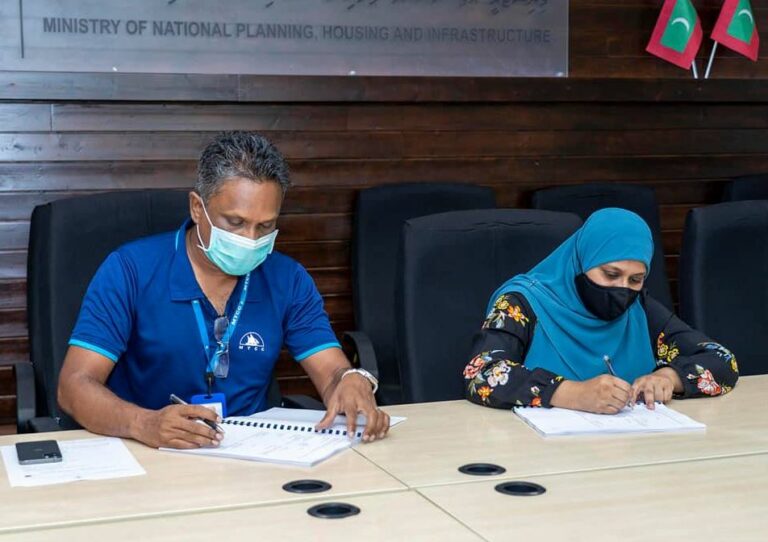 MTCC CEO, Adam Azim, signed the deal on behalf of the company and Permanent Secretary, Ms. Zeeniya Ahmed Hameed, put her signature on behalf of MNPHI.