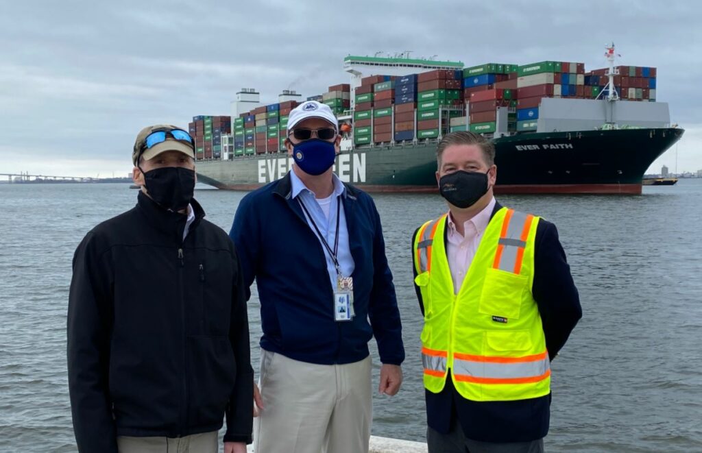 During the visit, the Evergreen Ever Faith – a 12,000-TEU container ship – called on the Port.