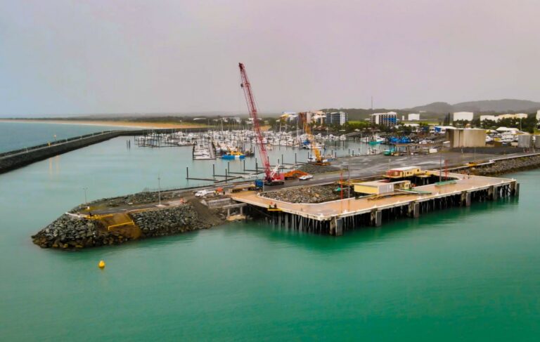 “Work is continuing come rain or shine by contractors Davbridge Constructions. The breakwater slope has been reprofiled, foundation columns and headstocks are in, and the installation of 27 deck units is underway,” said NQBP.