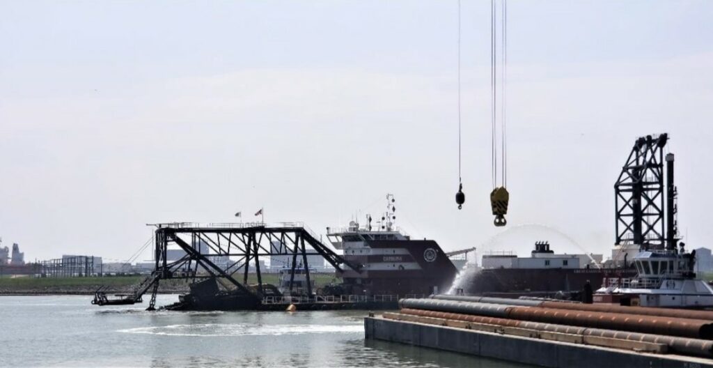 Dredge Carolina lowered into the Freeport Channel/Port Freeport