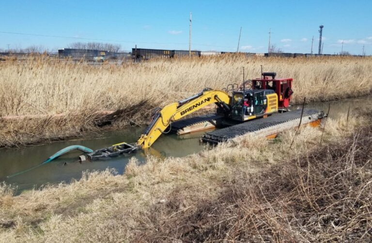 Under the cleanup project, a hydraulic vacuum-like dredge is being used to remove approximately 57,000 cubic yards of contaminated sediment from the creek’s bottom.