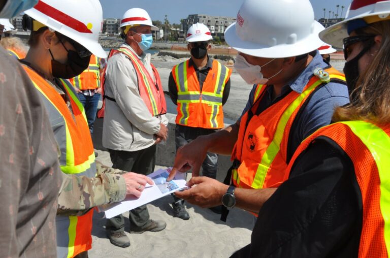 During the tour, Col. Balten, along with other representatives from the Corps, the City of Oceanside and Manson Construction, received an update about dredging project at Oceanside Harbor.