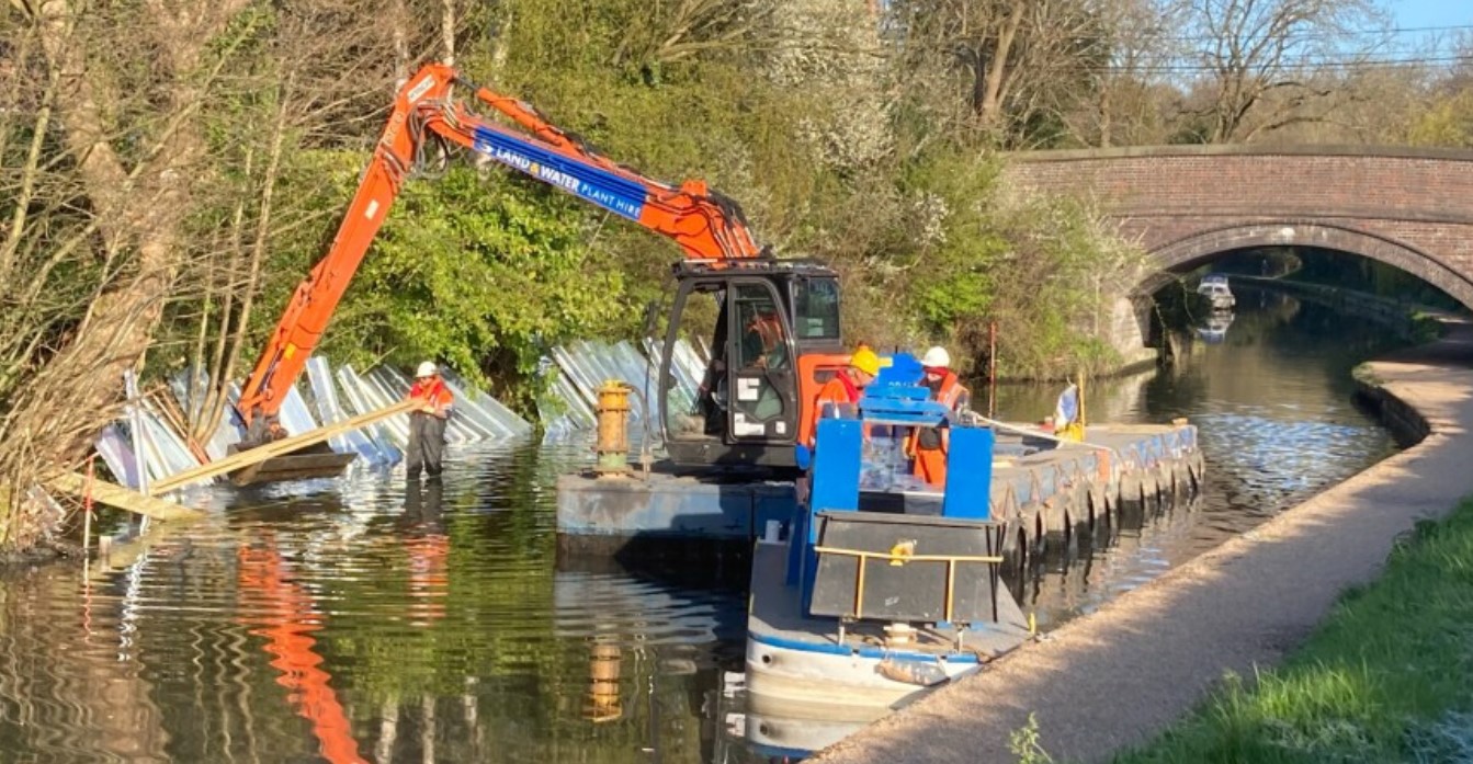 The work involves dredging sections of the canal and installing steel piles along the edge of the towpath making it easier for boaters to navigate and moor.