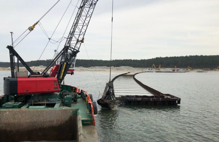 Overall, the Vistula Spit Shipping Channel project includes construction of two breakwaters, a channel, two rotating bridges over the lock, four sluice gates, landscaping as well as the adjacent roads and the soil reinforcement of the road’s embankments. A 190-hectares artificial island within the Vistula Lagoon will also be built.