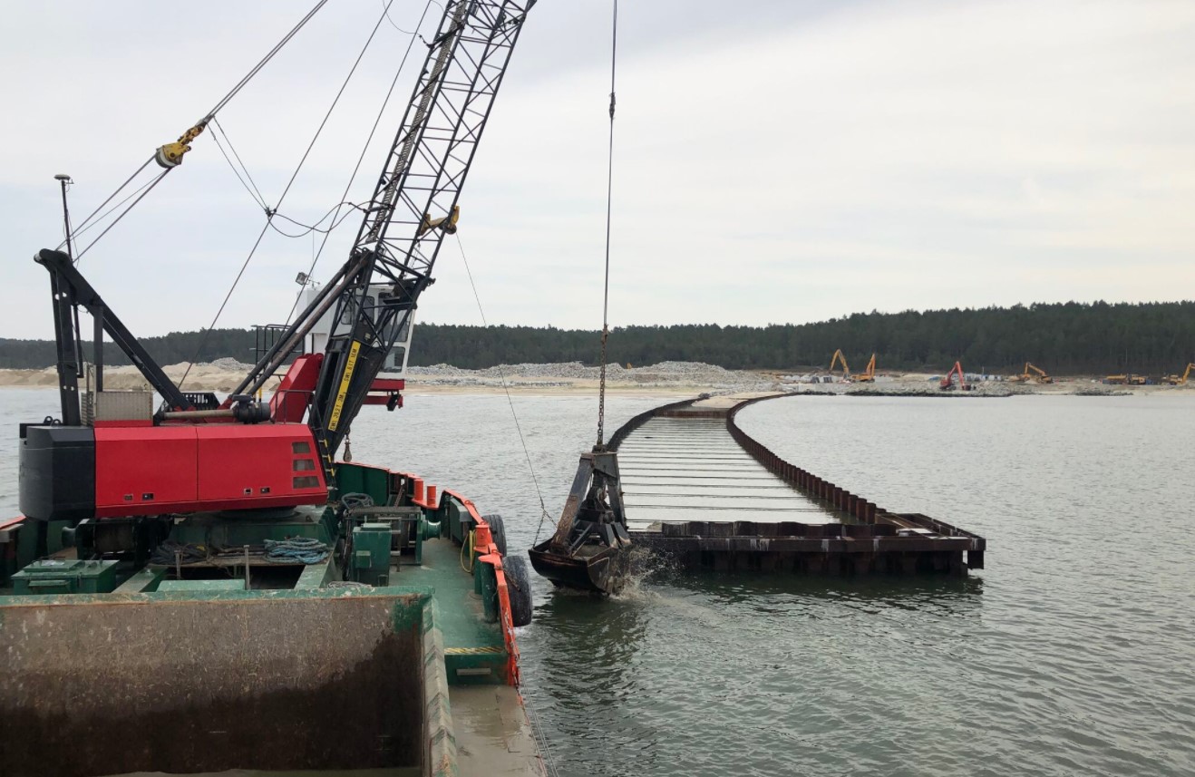 Located outside the spit in the Gdańsk Bay, the two breakwaters will have respective lengths of 1,014 and 568 meters, forming a protective harbor.